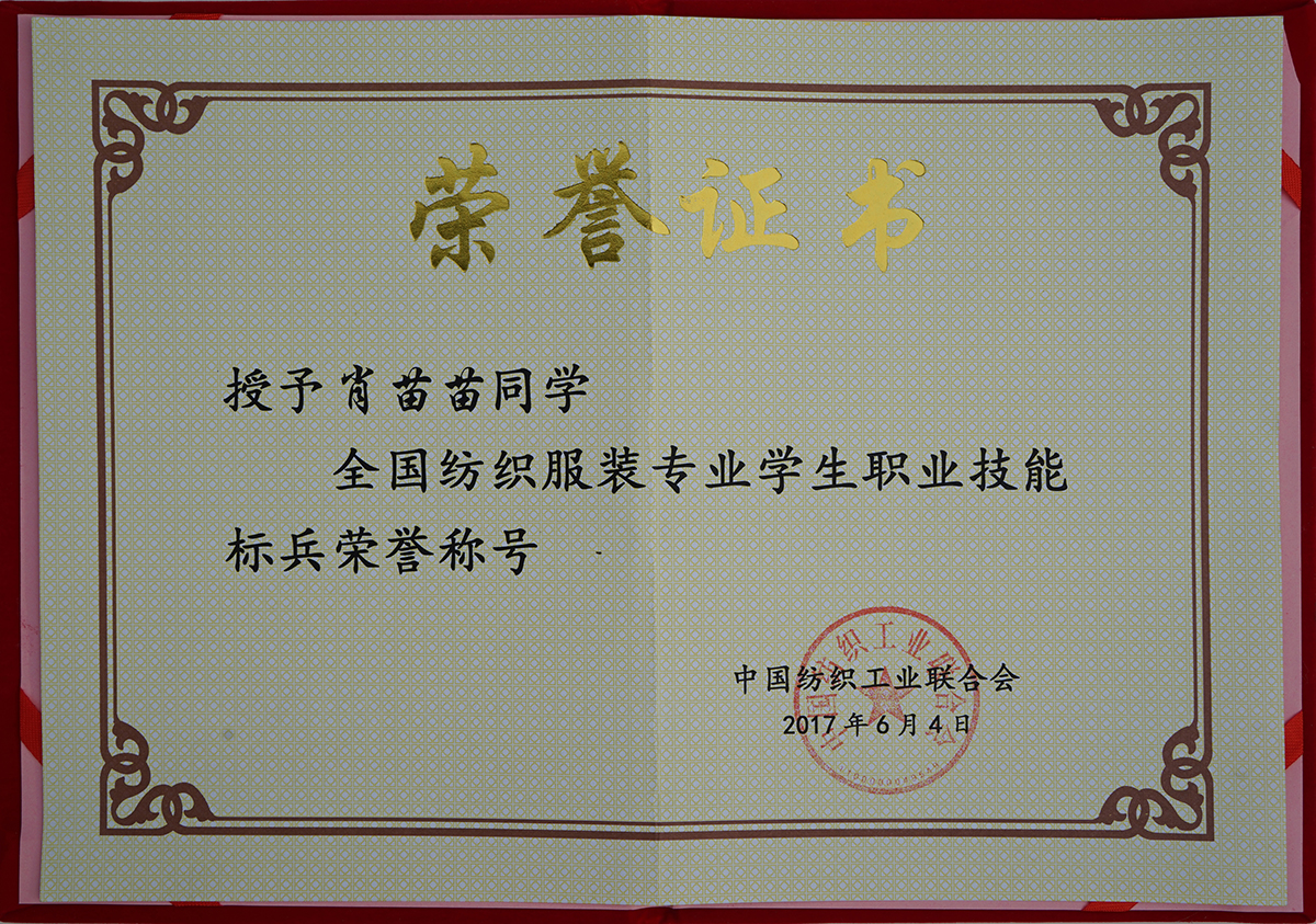 肖苗苗 2017全国职业院校技能大赛 金奖 |