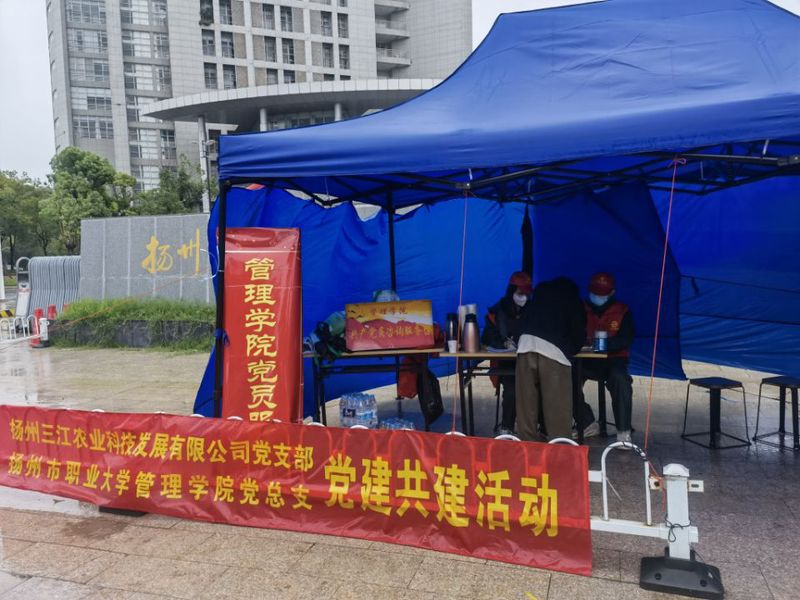 在学校东门外,“党员服务站”和“管理学院欢迎您”的横幅红得亮眼。“您好,我是管理学院的新生,请问这里可以托运行李吗?”“是的,请问你是哪个专业的学生?”昨天上午8点左右,在管理学院的迎新报到点,管理学院学工办主任史晓明老师应声抬头,只见一个女生衣着单薄,穿着一次性的雨衣,在她身后不远处,父母正守着七八件行李。史晓明在核对好信息后,接收过行李,身边西江生态园的党员快速地把行李放上接驳车,仔细盖好防雨布,驶往生活区方向。暖和过来的女生也依依不舍地跟父母告别后,轻松进入教学区开始办理报到手续。