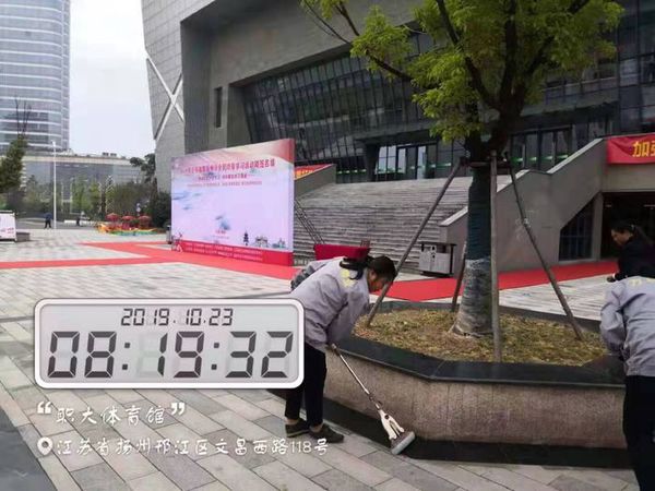 为确保活动的顺利进行,万杨物业的保洁员们从前两天下午,就在为本次活动做着准备工作,场馆内的细节卫生,清扫公共区域,打扫主席台,清理外围遗留的垃圾;万杨秩序维护员除了做好门岗、巡查、对外来人员、车辆登记等工作职责外,也能积极配合校方完成临时交办的活动任务,帮助指挥车辆的停靠、现场维持秩序等。