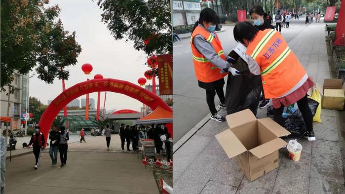 校园外环环境负责人考虑到报到的学生多,垃圾也会增多,在主干道两侧增加了垃圾桶,同时为确保校园的干净整洁,对主干道,新生接待点等重点部位及人流密集的地方派专人负责,安排保洁加大对职大校园外环保,循环保洁,垃圾及时清运。