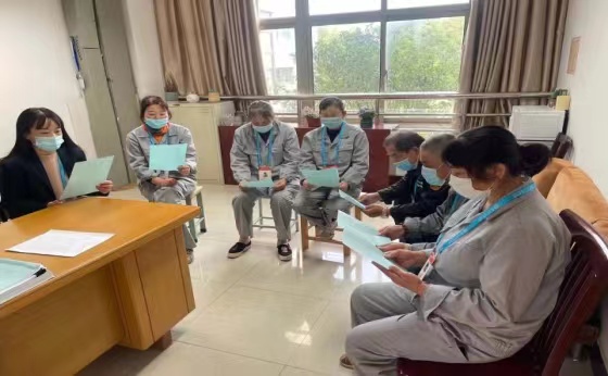 发放宣传单,组织员工开展集中学习,从知晓“社会主义核心价值观”及“文明校园创建‘六个好标准’开始;大屏投放创建文明校园的相关信息,杜绝出现不文明现象。