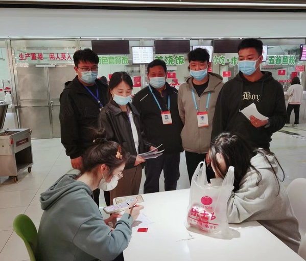 4月17日,后勤管理处饮服中心主任郑治带领九尚、千里、兆宇三家餐饮公司店长组成测评小分队,利用午餐时间,请在食堂用餐的同学对餐饮服务工作进行现场测评。