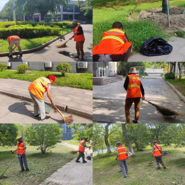 骄阳似火,空气中一股股热浪扑面而来,我们的绿化师傅身着黄色马甲,手持打草机穿梭在校园各个绿化带内,当问起师傅们这么热的天能承受的了的时候,他们都笑着表示为了维护校园优美的环境,就算为了防晒捂得严严实实,避免进入草丛被扎伤都会穿着两条裤子,就算有时候每天汗流浃背,忙起来水都来不及喝,他们也觉得很值得。