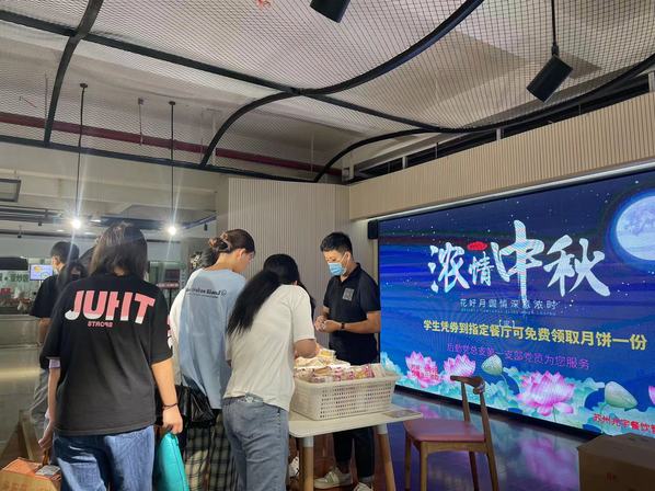 中秋节前夕,betway必威中文版 后管处饮服中心“月饼赠学子,共度中秋节”的活动在校园开展。9月9日,所有在校学生可凭券到指定餐厅领取一份中秋礼品。