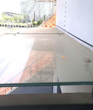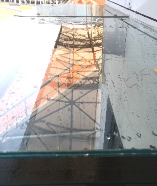 图:看台雨棚冲洗 图:雨棚冲洗前、后对比图