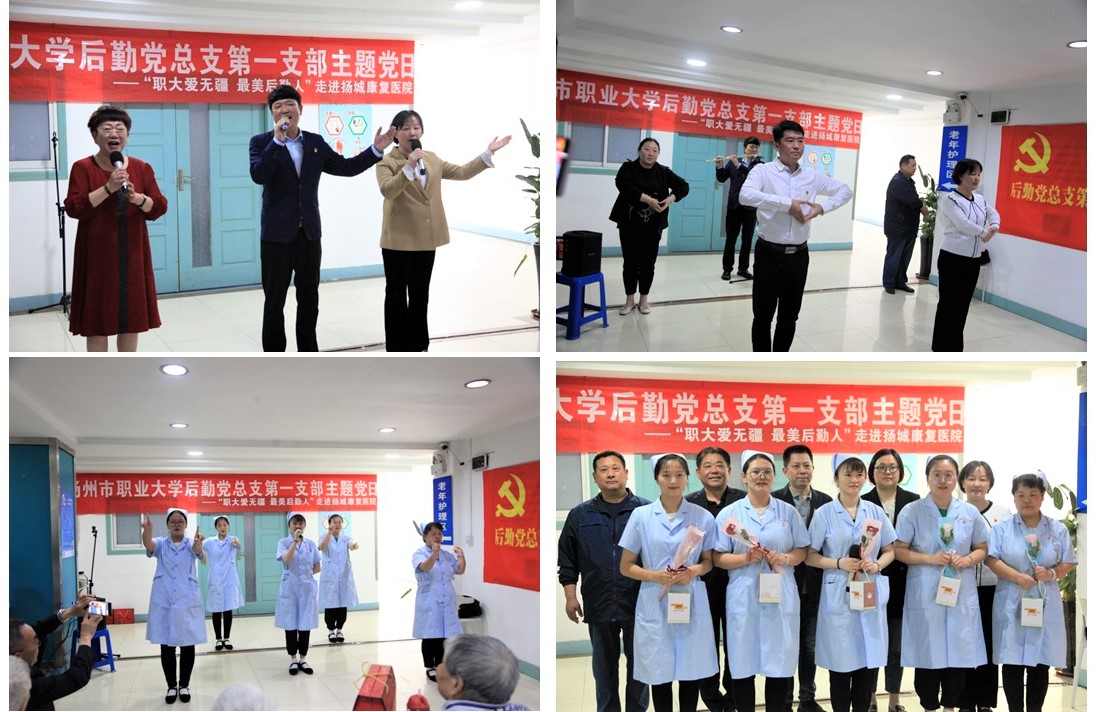 为展现新时代精神,构建和谐社会,促进社会主义精神文明建设,弘扬尊老敬老民族传统美德,展现基层党员人文关怀深厚情谊,发挥党员先锋模范带头作用,5月12日下午,betway必威中文版 后勤党总支第一支部全体党员于第112个“国际护士节”来临之际,赴扬城康复医院,开展主题为“职大爱无疆,最美后勤人”党日活动,慰问医护工作者和老人,表达对一线医护人员和住院老人的敬意和关爱,并为他们精心准备了文艺节目和慰问品。