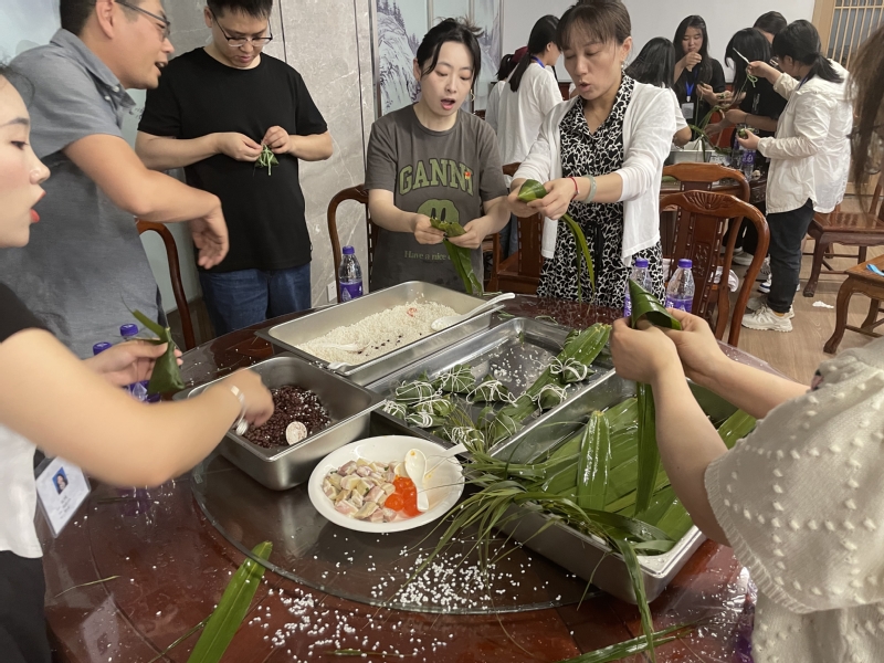 活动现场,教工餐厅为同学们早早准备好了粽叶、糯米、红枣等食材,同学们踊跃参与,一折叶,二盛料、三压实,四包,五扎绳,在一片欢声笑语中,大家互帮互学,把满满的快乐和祝福包进粽子,现场洋溢着浓浓的节日氛围。