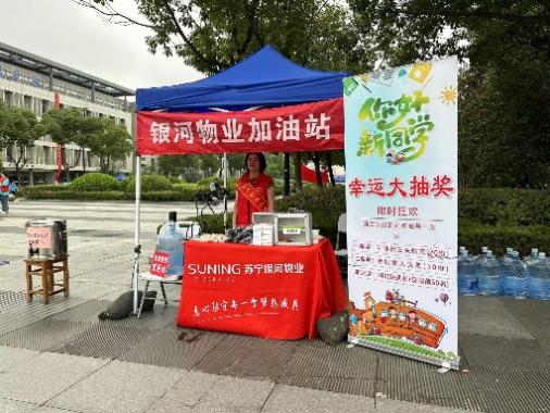 9月15日,苏宁银河物业工作人员在新生报到处设立了“便民服务站”,免费为新生及家长们提供急救用品、洗手液、饮用水等服务,通过抽奖方式赠送小礼品。“我辛苦点没事,不能让孩子们喝凉水,身体健康最重要”,保安王才云动情说道,为了能让新生喝上热水,他凌晨4点到校,烧水、灌装,骑上三轮车将热水桶分别送到笃行楼、勤行楼和苏宁便民服务站;因进入校园的新生和家长较多,预计会产生大量垃圾,物管中心在生活区主干道两边增加垃圾桶,银河物业增派15名保洁、2名客服,对新生接待点等人流密集地加大保洁力度,循环保洁,循环清运垃圾,确保校园干净整洁。