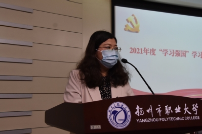 在学习经验分享交流中,机关党总支2021年度“学习强国”优秀管理员代表、宣传部党支部崔金辉,详细介绍了学校和支部“学习强国”平台的管理和使用情况,为大家分享了单独提醒、群内公布、书记谈话、化整为零、群内打卡5个学习管理小妙招。“学习标兵”、组织(统战)部党支部王梦露在交流发言中谈到她从随意点击到理性积分、规划学习和学用结合的学习“四部曲”。她说:“现在‘学习强国’已经成为我的每日必修课,通过学习提高了我的文化水平和党性修养,强化了职业道德,让我在工作的沃土里根扎得更深,路走得更远。学习标兵图书馆党支部佴林扬表示:“登录学习强国成了我每天生活中一个吸收知识的新途径和新习惯。自党史学习教育开展以来,我从平台学习中更加感悟到我们党的历史就是一部党与人民心连心、同呼吸、共命运的历史。”她动情地说,“通过本地平台上的学习,我对扬州这片生我养我的土地上的历史变迁与人文风貌也有了进一步了解。‘学习强国’平台丰盈了我的精神世界,给予我丰富的知识和前行的力量。”