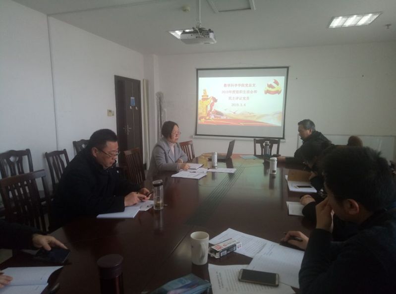 数学学院于3月6日召开了2018年度基层党组织生活会,并开展了民主评议党员工作,全院9名党员同志全部准时参加会议。会议首先由学院党总支书记带领全体党员学习了《孤岛32年》、《中国共产党党支部工作条例》等内容,并通报支部班子查摆的问题。会议第二项议程由学工、教工两位党支部书记围绕各自分管党支部的工作、作风等方面认真进行了党支部述职报告,其余党员同志结合两位同志的述职报告,给出相关评议。会议第三项议程是民主评议党员:个人剖析、批评和自我批评、对照四个方面进行党员评议,汤宁荷、刘桂香优秀,其他党员合格。