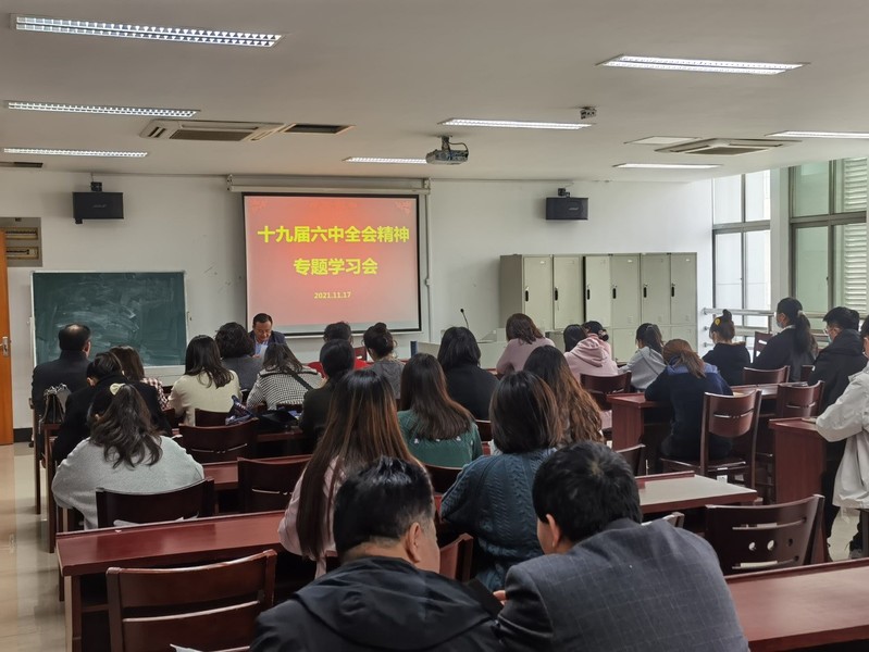 2021年11月8日至11日,中国共产党第十九届中央委员会第六次全体会议胜利举行,全会听取和讨论了习近平总书记受中央政治局委托作的工作报告,审议通过了《中共中央关于党的百年奋斗重大成就和历史经验的决议》。为深入开展党史学习教育,持续推进全面从严治党不断深入,11月17日下午,人文学院党总支组织全体师生党员召开党的十九届六中全会精神专题学习会。