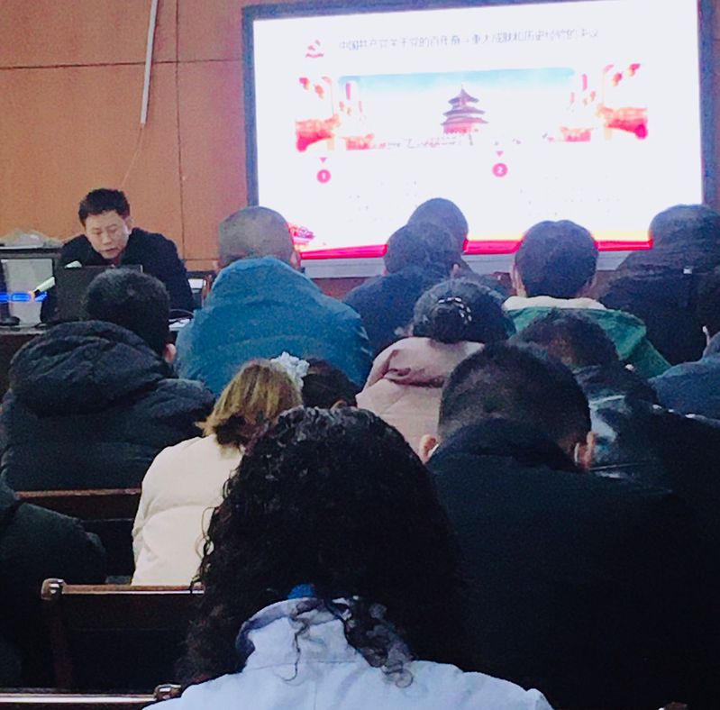 为深入学习贯彻党的十九届六中全会精神,12月15日下午,后勤党总支书记许建平在21号楼二楼会议室,以《以十九届六中全会精神为指引 谱写后勤工作高质量发展新篇章》为题,宣讲党的十九届六中全会精神,就如何做好学期末后勤保障工作进行动员和部署。后勤全体党员、中层正职以上干部及入党积极分子共49人参加党课学习活动。