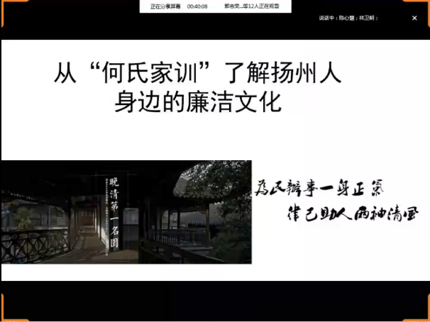 举办一次微型廉课宣讲活动。为充分挖掘运河文化蕴含的丰厚廉洁理念和廉政元素,推动廉洁文化建设与实际工作生活交融互动,数学学院举办了以“扬州人身边的廉洁文化”为主题的微型廉课宣讲活动。党总支书记周军以“何氏家训”为切入点为院全体教师深入浅出的介绍了廉洁自律的重要意义。周军书记勉励大家,“两袖清风身欲飘,杖藜随月步长桥。功名利禄皆淡泊,悠哉游哉自逍遥。”他要求,党员干部要进一步加强理论学习,滋养浩然正气;要增强法纪意识和规矩意识,严守行为红线;要不忘教书育人初心,牢记立德树人使命,营造好风清气正的校园生态。