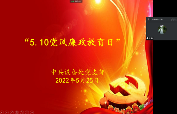 为贯彻落实党风廉政建设、反腐倡廉工作,2022年5月25日下午,设备处党支部开展“5.10党风廉政教育日”主题党日活动,以“修身律己树形象,廉洁自律干事业”为目标,提升全体支部党员廉政意识。支部书记王亚同志主持会议。