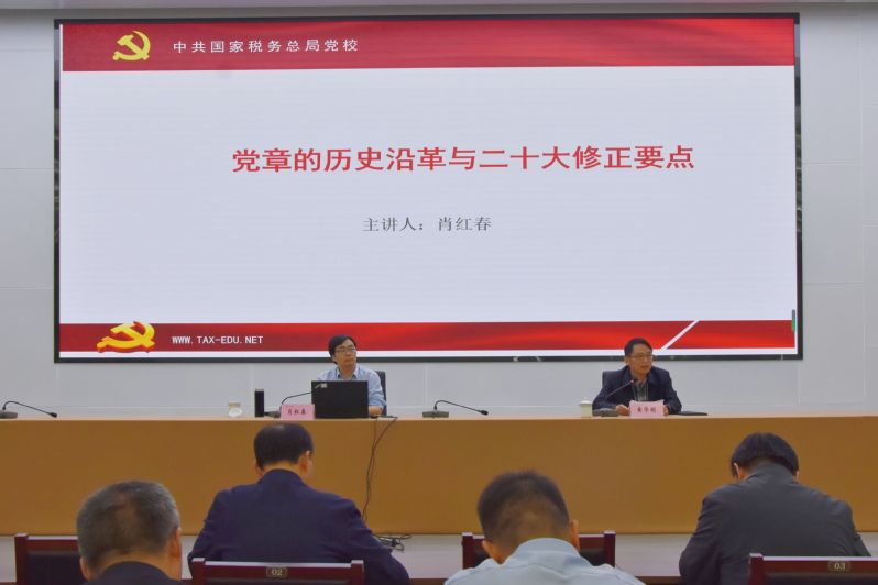 会上,肖红春主任以《党章的历史沿革与二十大修正要点》为题,为我们上了一堂精彩生动的专题报告。他围绕党章的历史沿革和二十大的修正要点,通过深度剖析党章的逻辑结构与精神要义,系统阐释了党章在党的事业和党的建设中的根本性规范和指导作用。大家一致认为,报告内容丰富,深入浅出、分析透彻,对进一步帮助党员干部深刻把握党章修改的科学内涵和重大意义、深入理解党章的精神要义、深入贯彻落实党的二十大精神具有很强的指导意义。