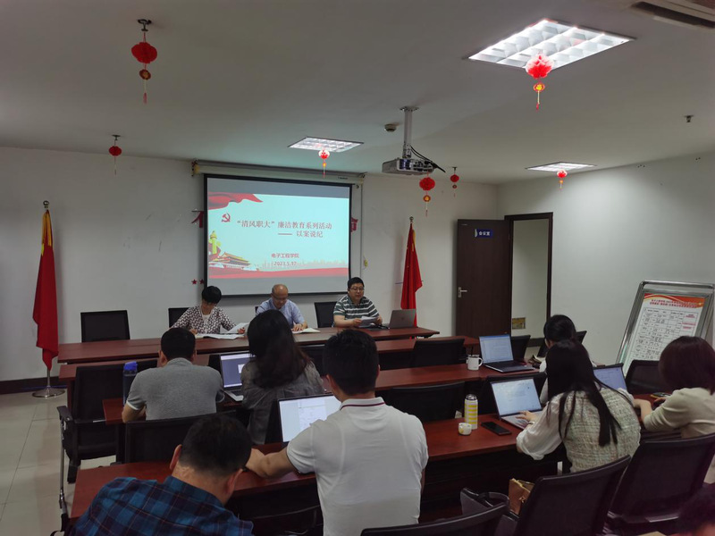 为深入学习领会习近平新时代中国特色社会主义思想和党的二十大精神,进一步强化全院教职工纪法意识,夯实廉洁思想根基,按照《关于开展“清风职大”廉洁教育系列活动的通知》要求,5月17日下午,电子工程学院组织开展了“以案说纪”廉洁教育活动。会议由学院党总支副书记陈久安主持。