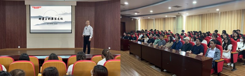 “清泉石上流成溪,不受一尘侵衣袖,胸有气节高雅洁,其身正正直不可折……”5月31日中午,在抒情动人的廉政文化视频《清风明月》播放中,电子工程学院党总支副书记陈久安在校图书馆101室报告厅开启了《邮票上的廉洁文化》党课主讲。学院党员干部、入党积极分子以及学生干部共计99人聆听了党课。