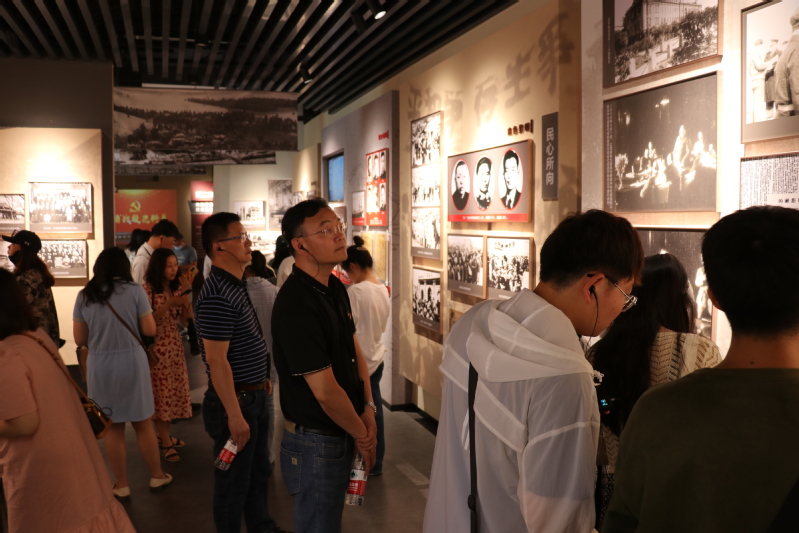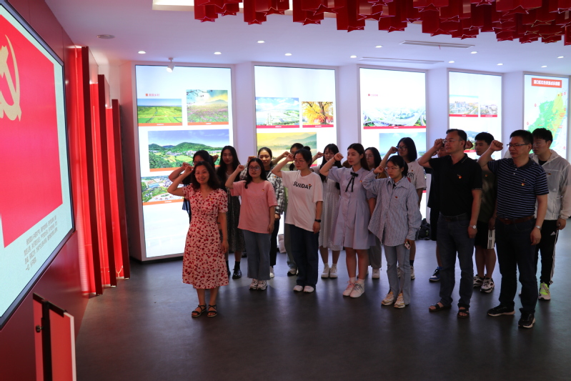 首先,全体人员来到三浦战役史料馆,该展馆分为四个篇章,分别展示了三浦战役的历史背景、重要过程、胜利历程和突出价值。走进展馆后,一幅幅珍贵的浮雕、照片引发了众人内心深处的共鸣。耳机里传来低沉的炮声和战士们冲锋陷阵的吼声,仿佛置身于历史的峥嵘时刻,增强党员新时期的坚定信仰、砥砺前行的坚定决心!在党旗面前,学工支部书记带领师生党员重温了入党誓词,伴随着庄严的宣誓词,鲜艳的红旗深深刻入每一位党员的心中。全体师生肃立,气势振奋人心,展现出了浓郁的爱国主义情感。
