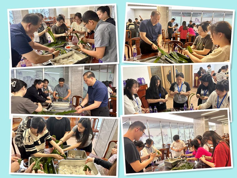 在学校教工餐厅的大力支持下,部门全体党员老师和学生社团主要学生干部来到学校教工食堂,一边分享端午节的来历、习俗以及历史人物屈原的廉洁故事,一边交流学习包粽子技巧,共包“廉心”粽子。活动现场,充满了浓浓的传统佳节氛围,小小的粽子,用线连在一起,寓意师生连心;棱角分明,是在提醒大家做事必须坚持原则,永远保持清正廉洁作风。