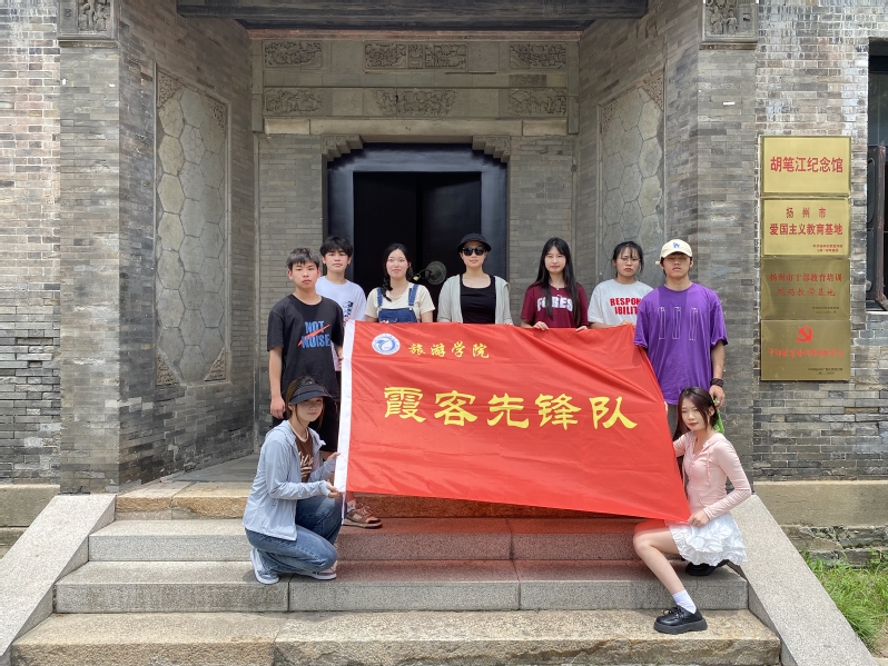 胡笔江是民国时期的著名爱国金融家,在“七七事变”后以身作则,积极动员广大爱国人士支持抗战。在其不幸殉职后,毛泽东、朱德同志送挽联,称胡笔江为“金融巨子”。位于广陵区沙头镇的胡笔江故居是扬州市爱国主义教育基地,在参观过程中,由旅游学院“霞客先锋队”的成员李洋向同学们详细讲述了胡笔江的奋斗历程,包括其年少勤学立志、创建中南银行、忠贞爱国、为国捐躯等事迹,让大家充分学习了解这位民国金融家、银行家的家国情怀。