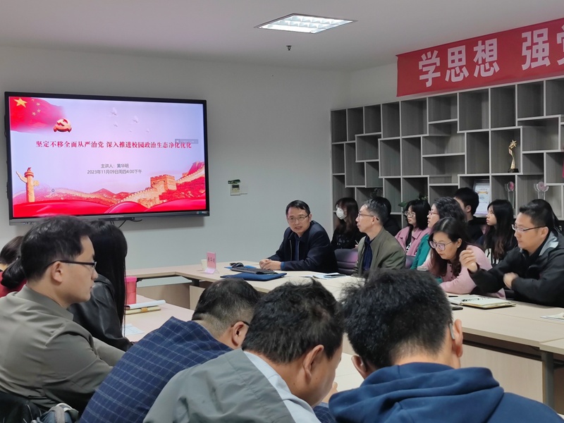 11月9日下午,校党委委员、纪委书记黄华明为学院全体教职工及学生代表讲授了一堂“坚定不移全面从严治党,深入推进校园政治生态净化优化”为题的廉洁专题党课。专题党课由园林园艺学院党总支书记周忠主持。