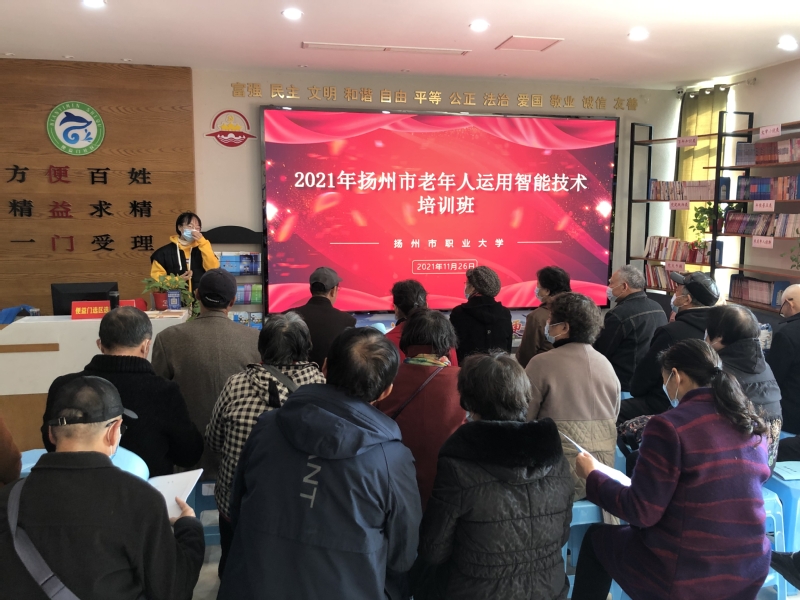 2021年11月26日,我校在景区梅岭街道便益门社区开展老年人运用智能技术培训,来自社区内的三十名老年居民友参加了培训。