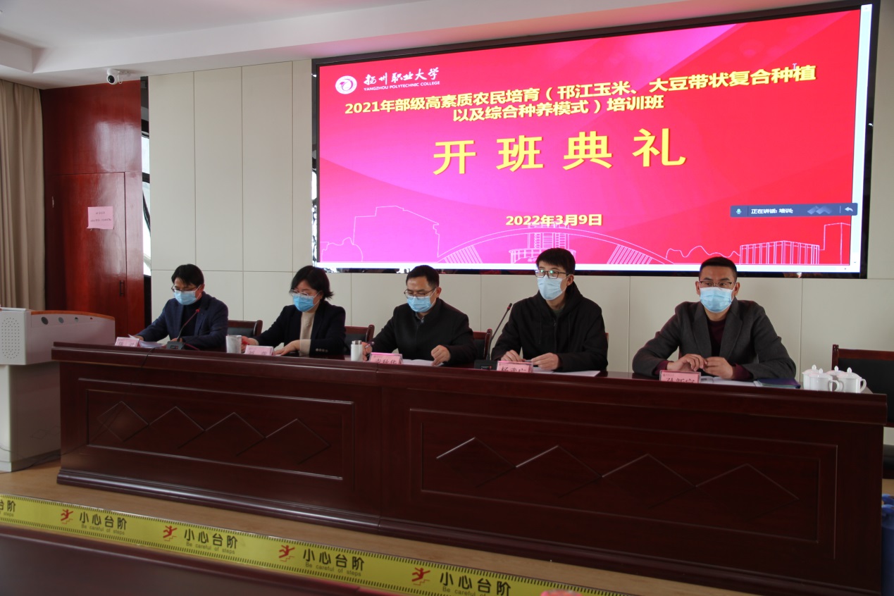 近日,2021年部级高素质农民培育(邗江玉米、大豆带状复合种植以及综合种养模式)培训班在我校开班了。市农业农村局、邗江区农业教育培训中心、我校继续教育学院相关人员及来自邗江区各乡镇的97名农民学员参加了开班仪式。