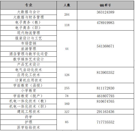 受新冠肺炎疫情影响,报到采取线上报到方式,请于2022年3月19日至2022年3月30日期间,务必及时加入相应班级QQ群(见下表)(以“专业+姓名+手机号”进行备注),此群将成为你在学制内(2.5年)与我们沟通联系的主要途径。