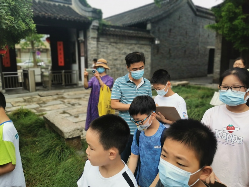 为讲好运河文化故事,传承运河文化,扬州开放大学围绕“运河文化社区教育基地”建设开展了“运河文化探访之旅”系列活动。昨天(7月19日),学校社区教育教师朱有伟带领着20名青少年走进阮元家庙,寻找古代的碑刻、水井、建筑、砖雕、楹联等文化遗存,讲述着阮元的从政之路和治学经历。