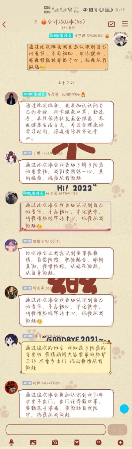 为加强学生的疫情防控意识,引导学生理解学校防疫规定,营造文明健康、井然有序、人人防疫的良好氛围,经济贸易学院各班于2022年3月18日起开展形式丰富、内容多样的“抗疫从我做起”线上主题班会。