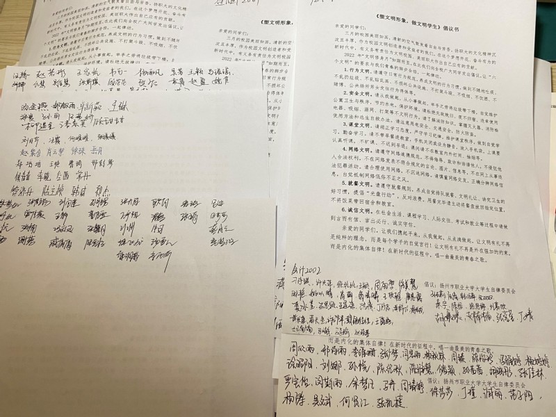 “知是行之始,行是知之成”。各班学生由班会主题联想到身边事身边人,并就优秀行为和不良行为发表自己的看法,表明自己的态度,承诺自己的行为。会议最后,各班组织全体学生阅读《塑文明形象,做文明学生》倡议书,并集体签名,确保不做语言上的巨人,行动上的矮子。