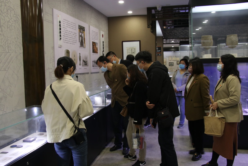 经贸师生党员首先来到十二圩中国两淮盐运博物馆,馆内分为四大展厅——“淮盐转运 源远流长”、“东南盐都 利浦尽美”、“华丽转身 继往开来”、“人杰地灵 遗泽流芳”四大板块,展陈了古代至中华人民共和国成立之后两淮盐运相关文物600余件,铺陈了淮盐文化源远流长的历史画卷。“大家请看一下这张《世界平方图》,有没有什么发现?”讲解员问道。原来在《世界平方图》里有“十二圩”,却看不到扬州或仪征,可见当时十二圩的地位之重要。通过讲解员的讲解和观看视频资料,生动呈现了历史上官僚政客云集,船工盐工深受剥削压迫的场景,为中国共产党组织的发展与开展工作提供了得天独厚的条件。
