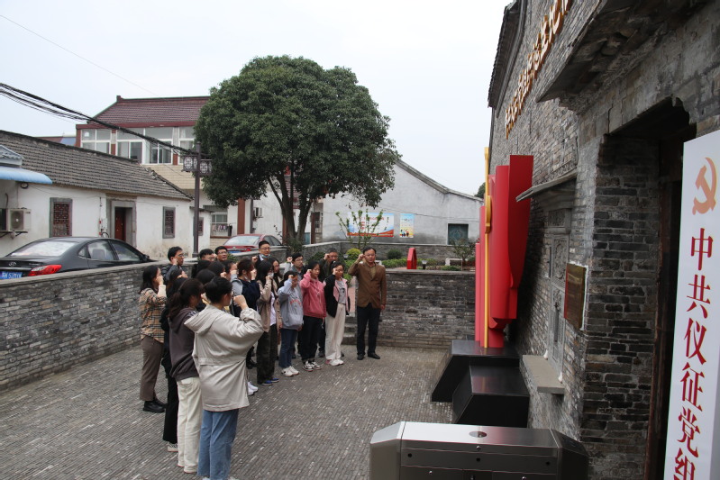 “我志愿加入中国共产党,拥护党的纲领……,”“我宣誓……。”在中共仪征党组织诞生地,面对鲜红的党旗,经贸学院党总支书记带领全体同志高举右臂,紧握右手,庄严宣誓。铿锵有力的宣誓声响彻整个街道,表达了对党的无限忠诚和对革命先烈的无限哀思。