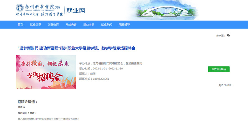 为更好服务广大毕业生,满足2023届毕业生及用人单位的人才招聘双向需求,经贸学院、数学学院于2022111-30日联合举办逐梦新时代 建功新征程”2023届毕业生网络专场招聘会。