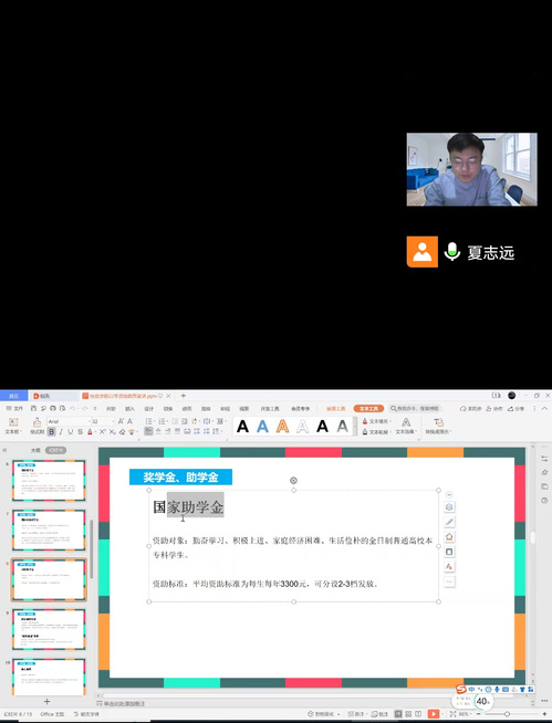 认真贯彻落实国家资助政策,营造我校学生资助工作的良好氛围,经济贸易学院进行了资助政策宣传活动。经济贸易学院于927号,利用腾讯会议的方式召开了教育资助工作会议,会议由夏志远老师主持,各班班长参加了此次会议。