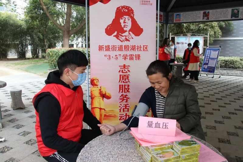 尊老敬老一直以来是中华民族的传统美德,关爱老人和照顾老人,是新一代大学生应尽的责任和义务。经贸学院学生会带领大学生青年志愿者到新盛街道殷湖社区开展慰问活动,学生会主席蔡江濠帮助社区老年人测量血压、打扫卫生,身为退伍军人的他时刻不忘“尊敬老人、关心老人”。通过青年志愿者服务,有助于培养学生“懂礼节”的观念,增加学生的凝聚力。