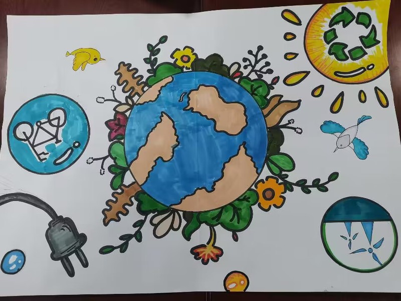本次活动包括变废为宝废物利用展示和环保主题画比赛两个环节。变废为宝废物利用展示展出了学院创意社团的作品和部分同学利用废旧物品制作的手工艺品。展品充分体现了节约和循环利用的理念,例如以废木棍和纸盒制作的笔筒、以口罩制作的装饰品,以及以旧衣服制作的花束等。而环保主题画比赛则以生动的形象和鲜明的色彩,展现了地球的美丽和危机,呼吁人们珍惜自然资源,关爱地球家园。这一环节不仅展现了同学们的艺术天赋和创新思维,更加深入人心地传达了环保理念。