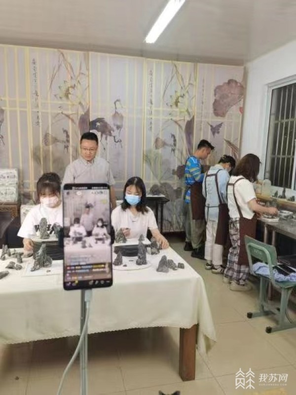 “云”上山水盆景制作引点赞! 扬州职大师生直播间展技能传技艺