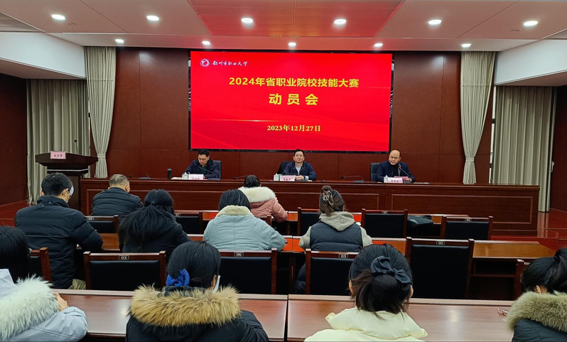 12月27日下午,2024年省职业院校技能大赛动员会在崇德楼315会议室召开。党委副书记、校长周春光出席会议并作动员讲话,党委委员、副校长吴书安主持会议。教务处负责人、各参赛学院院长、指导教师、领队和参赛师生参加会议。