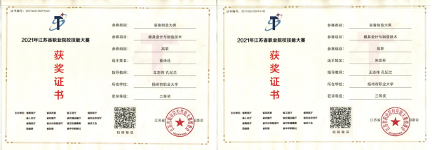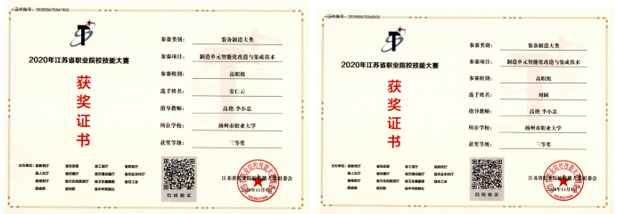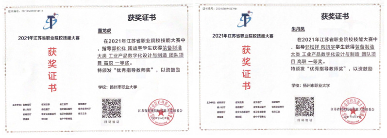 2015年以来,建成国家精品在线精品开放课程,先后获得教育部骨干专业及江苏省首批品牌专业、重点专业等;建成扬州智能制造先进技术示范中心、扬州模具产品设计与加工技术服务平台。开发了真项目、活案例的“机械制造与自动化资源库”,获批教育部1+X证书试点项目1个。学院教师主编出版了国家职业教育十二五、十三五规划教材4部、省级重点教材6部。9名教师通过西门子(中国)有限公司考核,分别获得西门子精英讲师资格和西门子机电系统认证资格(SMSCP)。依托学院平台,教师指导学生先后获国家、省职业院校技能大赛一、二等奖12项,其它各类大赛获奖42项。