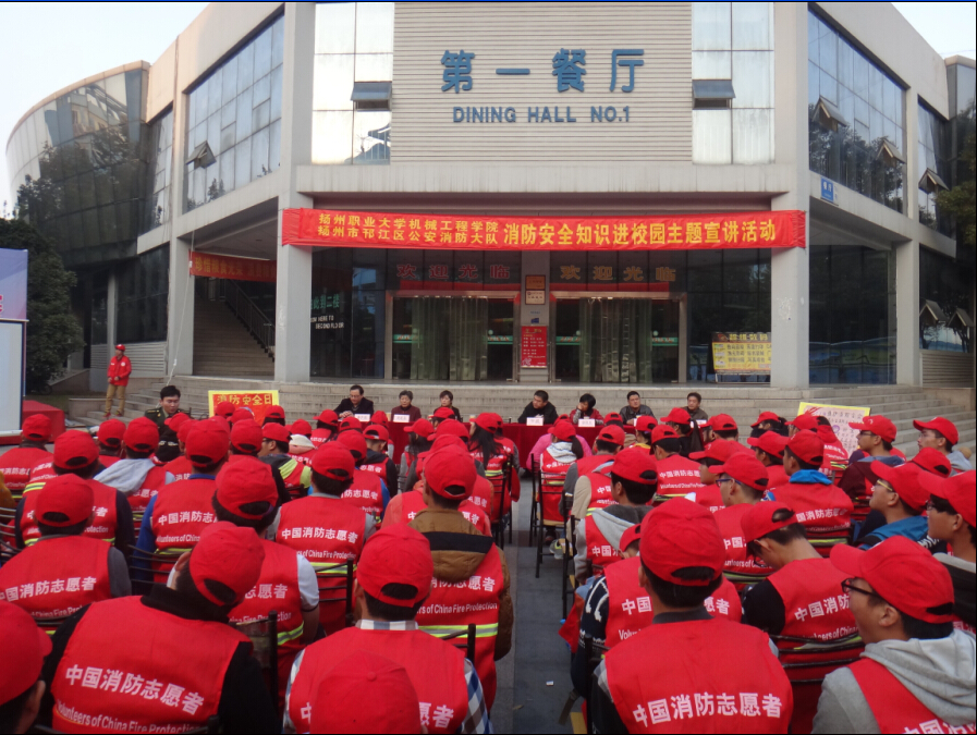 11月14日下午,机械工程学院与扬州市邗江消防大队联合开展的消防安全知识进校园主题宣讲活动在生活区一号食堂门前拉开帷幕。邗江消防大队警官徐泽明、机械工程学院党务召集人宋晓英、相关部门领导及该院青年志愿者协会全体消防志愿者同学一百多人参加了本次活动,活动由唐开鹏主持。