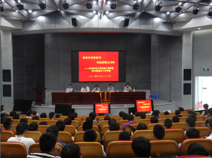 9月28日,机械工程学院在校学术报告厅隆重举行2014级新生入学导航教育。院长游文明教授发表了热情洋溢的讲话,他首先代表全院师生对新生的到来表示热烈的欢迎,并对学院近年来,通过大力实施“专业对接企业、团队对接项目、学生对接岗位”的“三对接”人才培养模式改革等有力措施,全面推进中央财政重点支持专业和江苏省重点专业群建设情况进行了介绍,希望全体新生坚定一个梦想、培养专业兴趣、学会怎样做人,寄语全体新生刻苦学习、快乐生活、诚实交往,建立真挚的友谊,收获甜美的爱情。紧接着,党总支书记宋晓英等院领导用生动的语言、翔实的举例分别从专业思想教育、人才培养方案解读、学生管理工作等对新生的大学生活进行了引航教育。与会师生们聚精会神地聆听,积极参与现场互动,不时报以阵阵热烈的掌声。学院还为每一名新生送上一本精心编撰入学指南――《2014级新生成才手册》,让新生结合专业培养计划和个人实际情况对自身发展进行合理规划。机械1404班新生孙国通表示:听了学院领导们的详细介绍,自己对即将正式开始大学生活更加充满信心,我的大学,我准备好了!