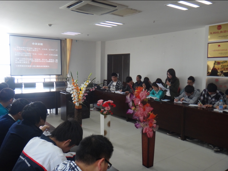 时值全国上下深入进行党的群众路线教育实践活动之际,结合我校教育实践活动要求,并联系校学生处、校团委等部门开展大学生文明修身工程,“三生教育”主题实践活动,“五爱”主题教育活动,“我为升本做贡献之―学习态度”主题团日活动的要求,机械139班班委会和团支部全体成员精心组织了本次系列主题教育活动。活动首先由同学代表就“懂礼节、正仪表、会交往”大学生文明修身工程、“生命、生存、生活”大学生全面健康成长、“爱国、爱党、爱校、爱学、爱劳动”五爱教育和如何明确学习目标、端正学习态度,为筹建扬州科技学院贡献力量做了精彩的主题发言。随后,在班主任杜晋老师的组织下,全班同学围绕上述主题进行了热烈地讨论。有同学以2012年时任国家主席的胡锦涛参加G20峰会,主动弯腰把五星红旗贴纸捡起以免被人踩踏一事举例,说明爱国并不遥远,就在我们身边;有同学指出极少数同学打着要用电脑学习的幌子,用父母的血汗钱买回电脑后却潇洒地坐在宿舍中打游戏,浪费了青春,挥霍了生命;还有同学提倡大学生应在实践中学习,不断完善自己,逐渐走向交往的成功,人生的成功。