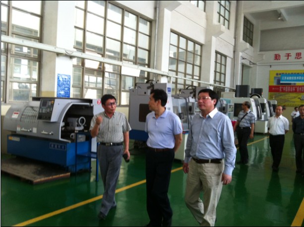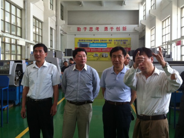 孙主任先后走访了我校机械工程学院的校办工厂和实验室,详细了解我校江苏省数控技术职业教育基地、模具实训基地、数控伺服实验室、机械CAD/CAM实验室等实训、实验中心的的软硬件配备情况,考察询问了机械工程学院相关专业课程开设情况和学生的实习实训安排。机械工程学院行政召集人游文明教授详细介绍了该院在核心课程建设、现场教学、人才培养模式等方面的创新举措。该院针对机械加工岗位的典型工作任务,遵循学生职业能力形成与培养规律,开发突出岗位能力培养的专业核心课程,通过教、学团队对接教学项目,实现课堂与生产现场相结合、实验实训教学与技能培训相结合的“课堂工场化与工场课堂化”教学改革,切实提高学生岗位能力和工程素养。