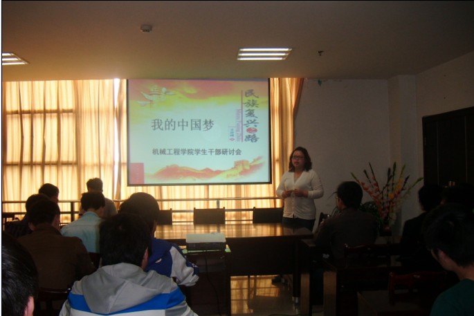 2013年5月7日,机械工程学院“我的中国梦”学生干部主题团日研讨活动在图书馆908会议室顺利举行,此次研讨会由学生会主持,学院团委书记张翔、副书记唐开鹏、辅导员陈昱等老师参加了此次研讨活动。