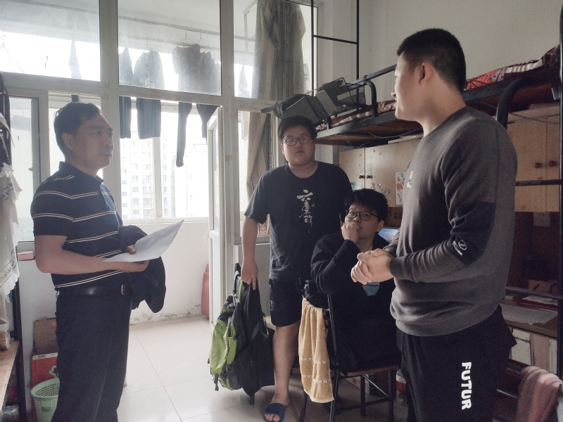 师生共聚递温情,安全教育势必行。机械工程学院“三联系”教师和全体普通党员教师集中走访学生宿舍,排查宿舍消防安全隐患,送去关怀与温暖。活动期间,老师亲切地和学生交谈,细心询问住宿学习、生活卫生等状况表扬鼓励宿舍模范学生,并就“火”和“电”相关安全隐患问题进行仔细排查,做到不留空白,不留死角。