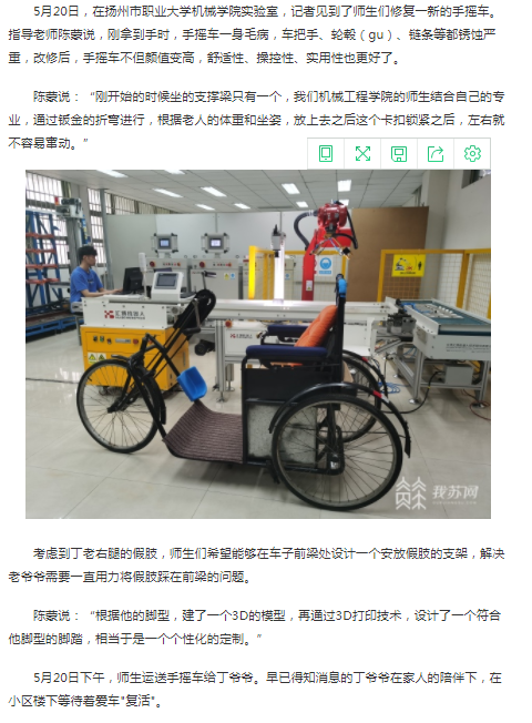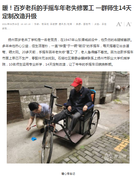 暖!百岁老兵的手摇车年老失修罢工 一群师生14天定制改造升级