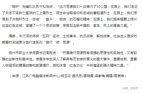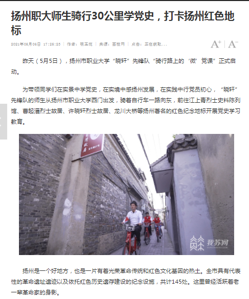 扬州职大师生骑行30公里学党史,打卡扬州红色地标