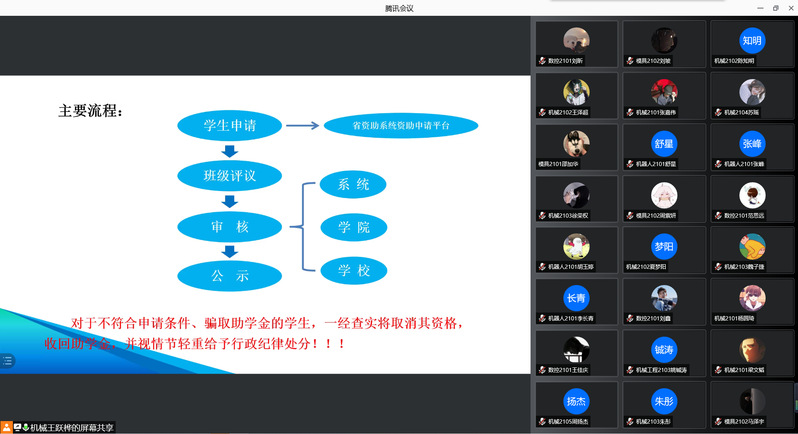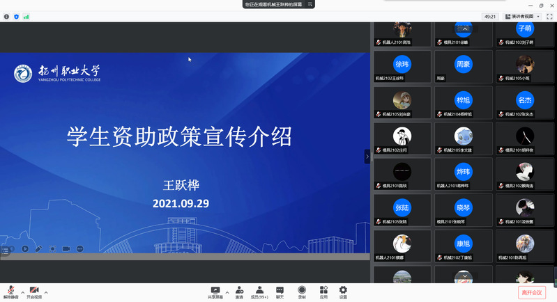 为了促进2021级新生更好地了解国家、学校和学院的各项资助政策,做好精准资助和资助育人工作,近日,机械工程学院积极开展线上新生资助政策宣传讲座并通过新生班班主任进一步落实资助政策。
