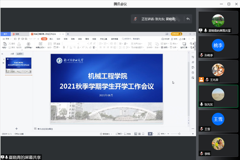8月23日晚8点,机械工程学院召开全体班主任和辅导员2021年秋季学期学生开学工作会议,研究部署2021年秋季学期开学相关事宜。